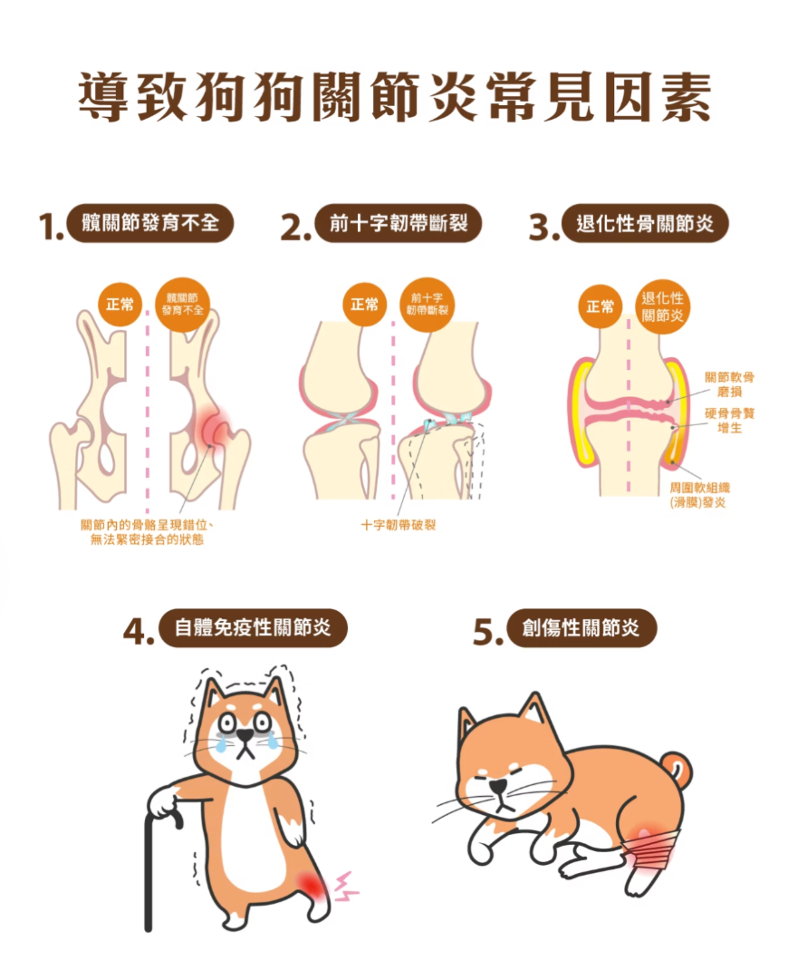 就像人類一樣,狗狗的關節會隨時間自然磨損。某些品種(如黃金獵犬、科基、拉布拉多)因遺傳或體型結構,更容易出現關節炎。