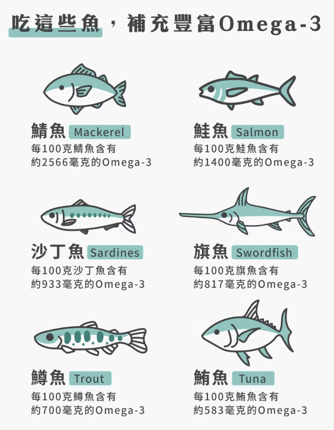 Omega-3 脂肪酸 - 含量極高(EPA、DHA)- 含量中等